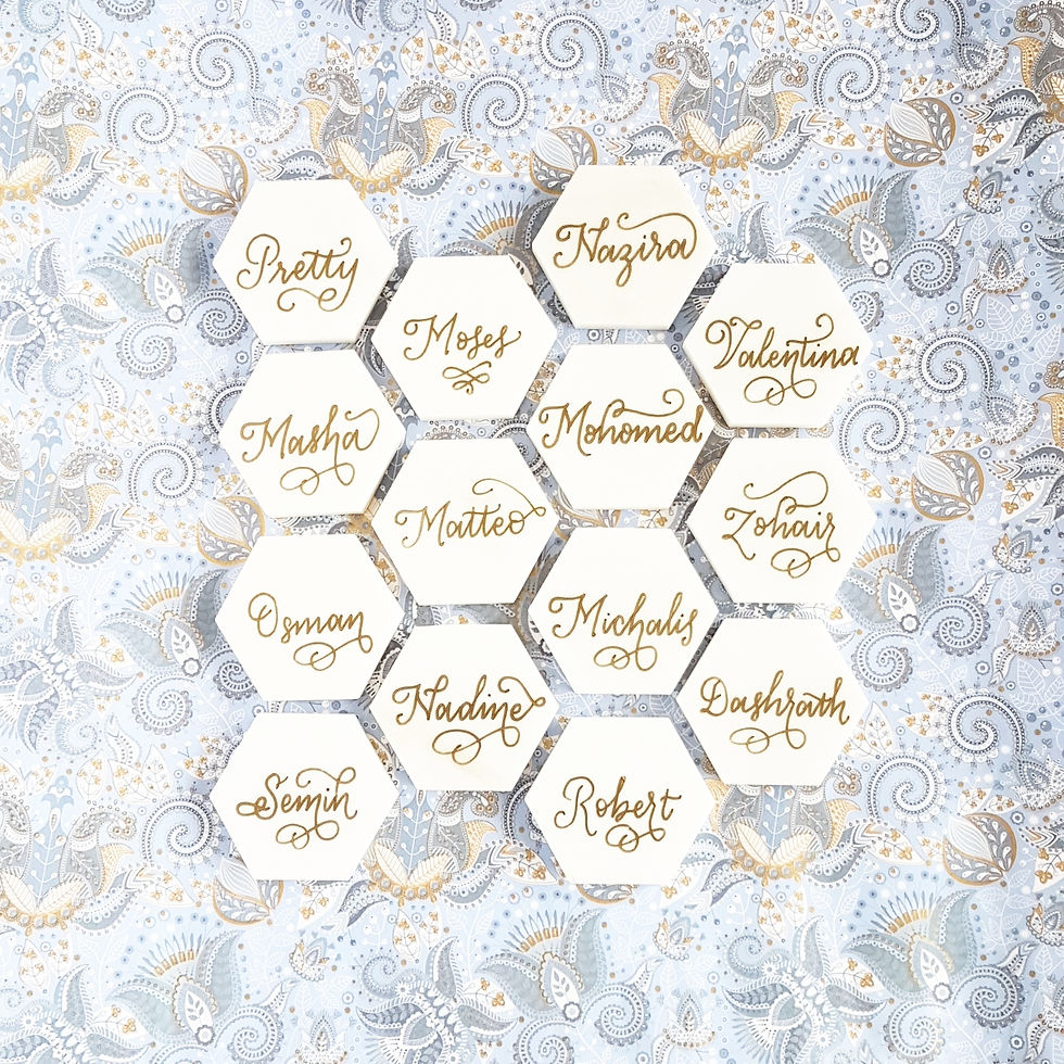 With the increasing popularity of this lost art on social media, I decided to start my own Instagram page. The response has been incredible! I have since conducted several in-person workshops teaching & spreading this art to fellow enthusiasts in the UAE whilst creating fun projects for friends and family from time to time. I have also dabbled in product design - mugs and polymer stamps. The high point of my journey so far has been working with brands providing live/on-site personalized calligraphy for their marketing events!